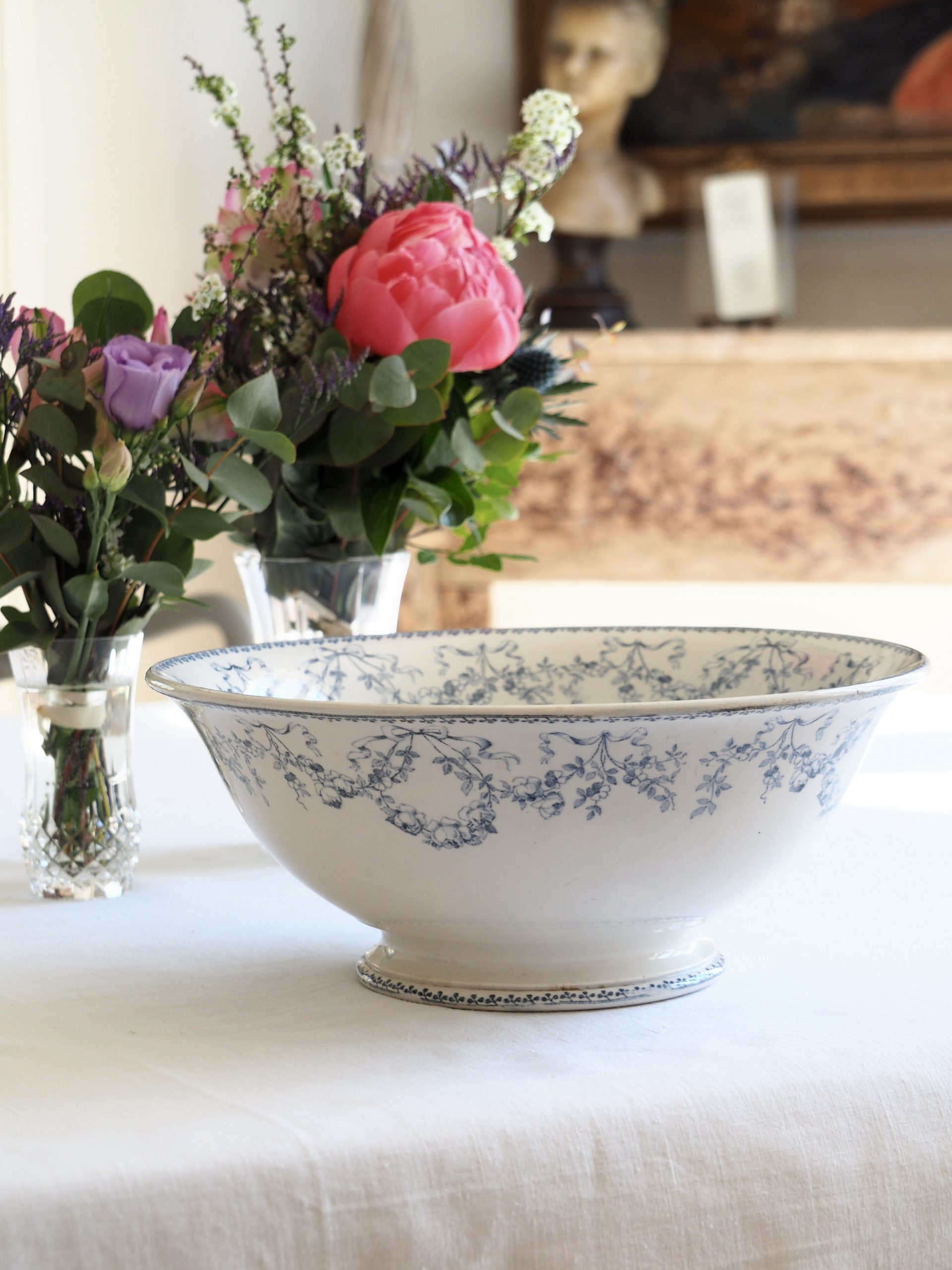 Le décor est composé de petites roses et de rubans en bleu (existe également en rose). Il apparaît au catalogue de la manufacture vers 1925.