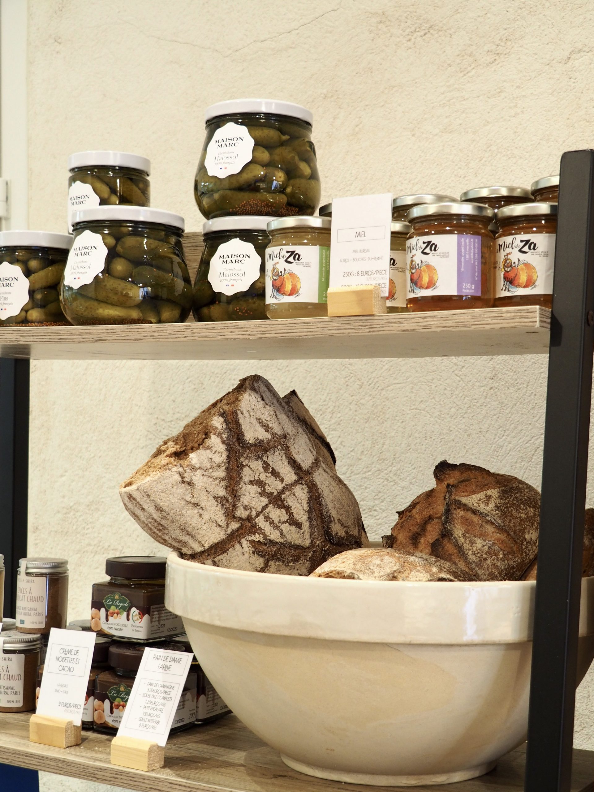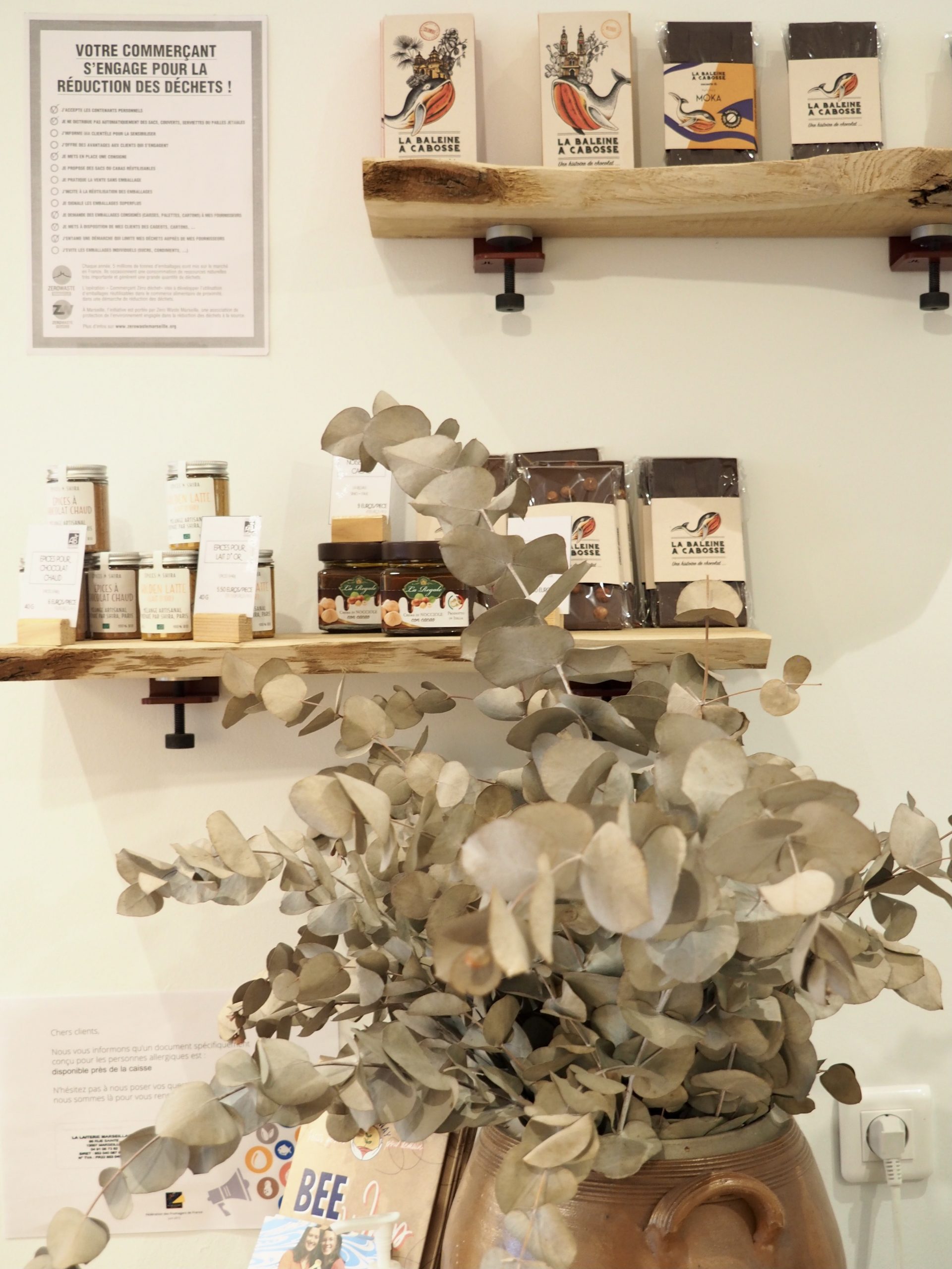 Dans de jolis paniers et de belles étagères en bois, il y a aussi des œufs bio locaux de poules élevées en plein air, du pain de la délicieuse boulangerie artisanale Dame Farine située non loin de la Laiterie et du chocolat de chez La Baleine à Cabosse produit à Marseille. Tout attire le regard et l’envie de gouter est forte !